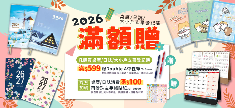 活動專區 > 11月促銷活動 > 2026年桌曆/日誌 滿額贈(2)珠友加碼