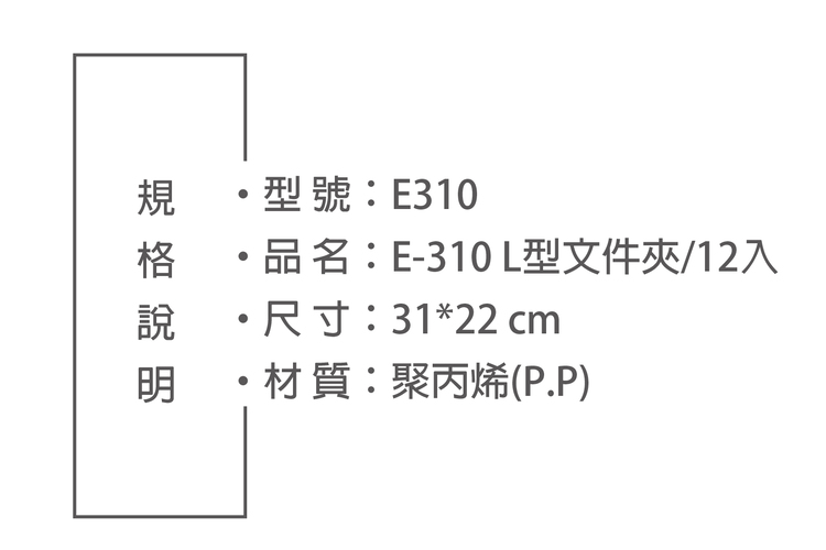 L型文件套 E310 PP,12入/包 長310x寬220mm 白。