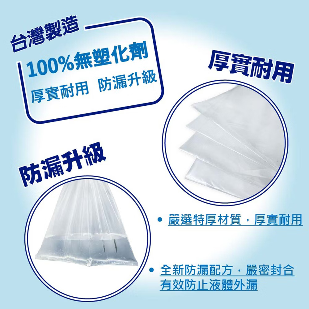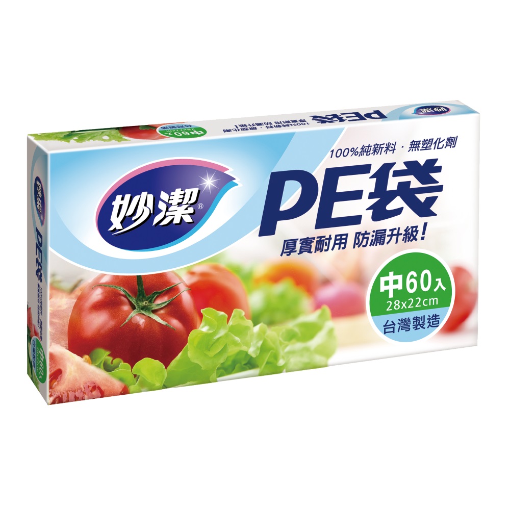 保鮮好幫手,快用這款【妙潔PE袋(中)】全新防漏配方,經嚴密封合後能防止液體外漏,獲得環保標章,採用PE純新料,無塑化劑,不傷身,嚴選特厚材質,厚實、耐用,就算魚蝦海鮮也不易刺破袋體,讓冰箱也不再腥臭味四起,保持食材新鮮、也讓廚房冰箱永保清新。