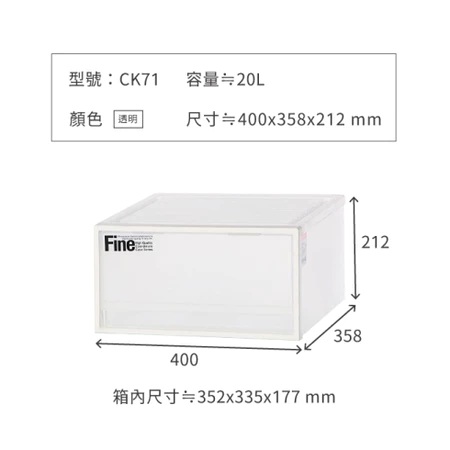 精美外框設計,簡約透明色系,易於檢視內容物,清楚分類,長條方正手把,便於拉取,抽屜內卡榫設計,可防止抽屜掉落;適用於各式衣物、玩具、雜物等收納,兩種樣式,可相互堆疊搭配,節省空間,亦可搭配鐵架、系統櫃使用。