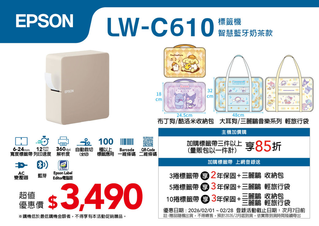 【滿額禮】凡購買『愛普生EPSON』標籤機(帶)全系列商品,單次單筆訂單滿$3000元,即贈:7-11 $100元禮券一張。滿$5000元,即贈:7-11 $100元禮券二張。※(恕不累送,數量有限,送完為止) ※(更多商品請上網選購) |