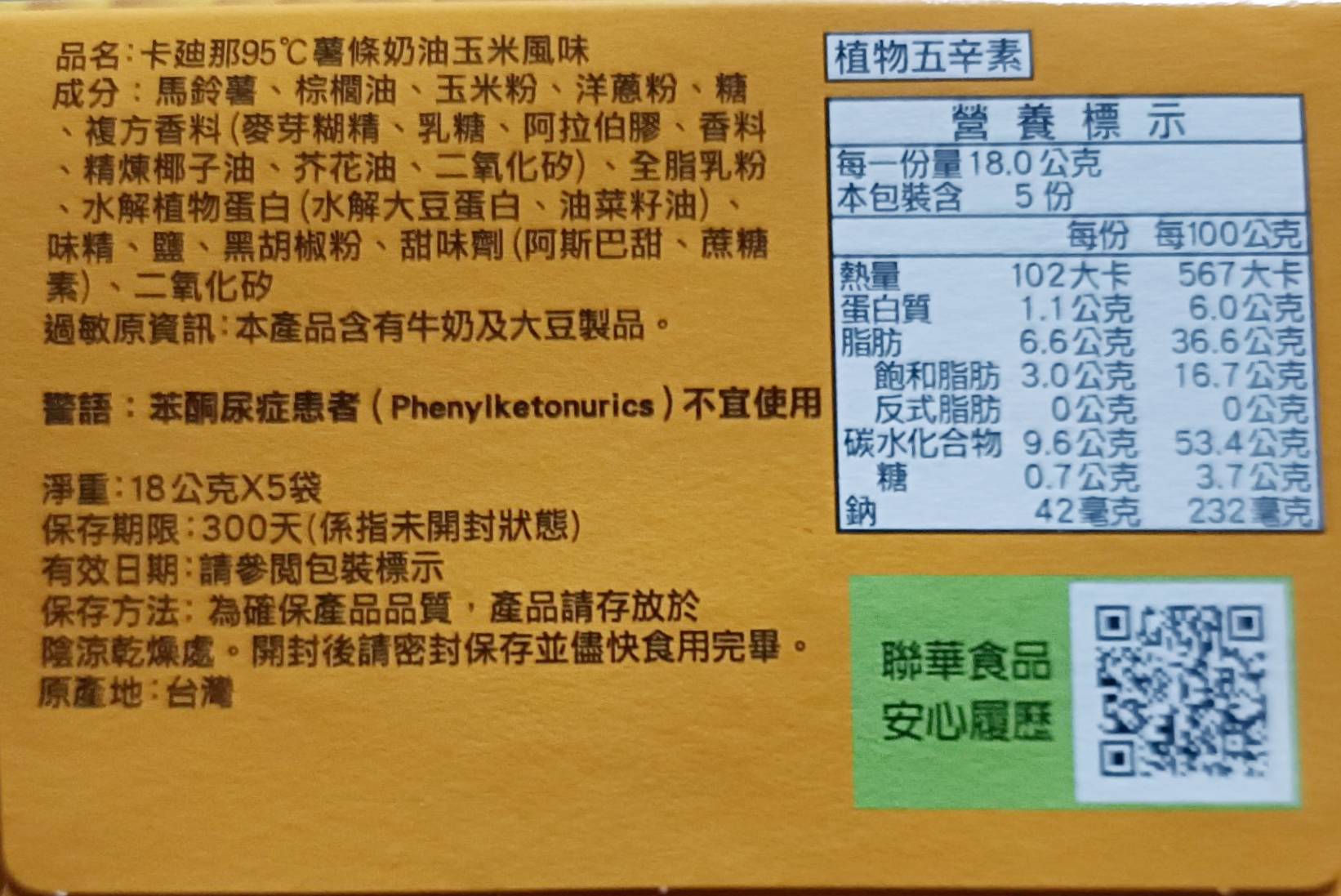 卡迪那95℃薯條/奶油玉米風味/90g
