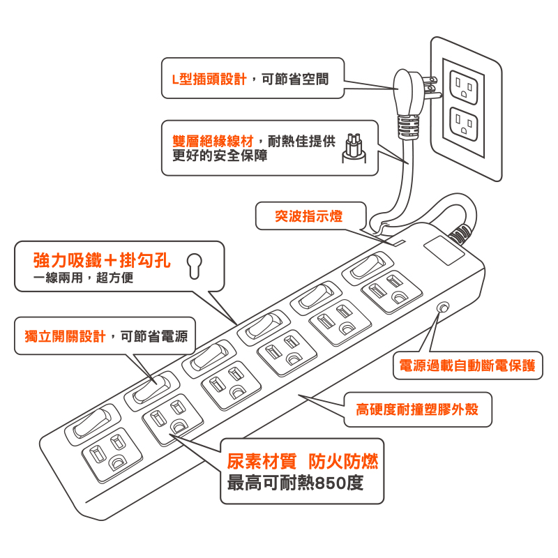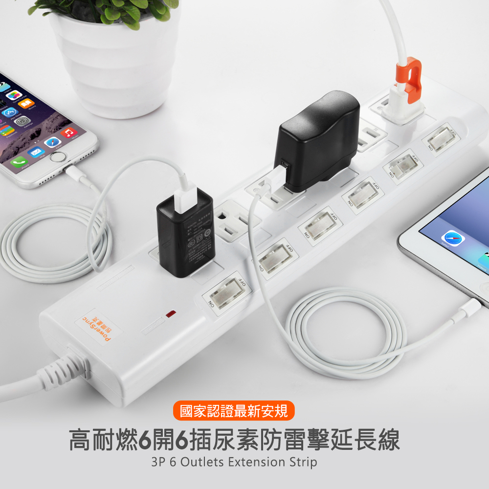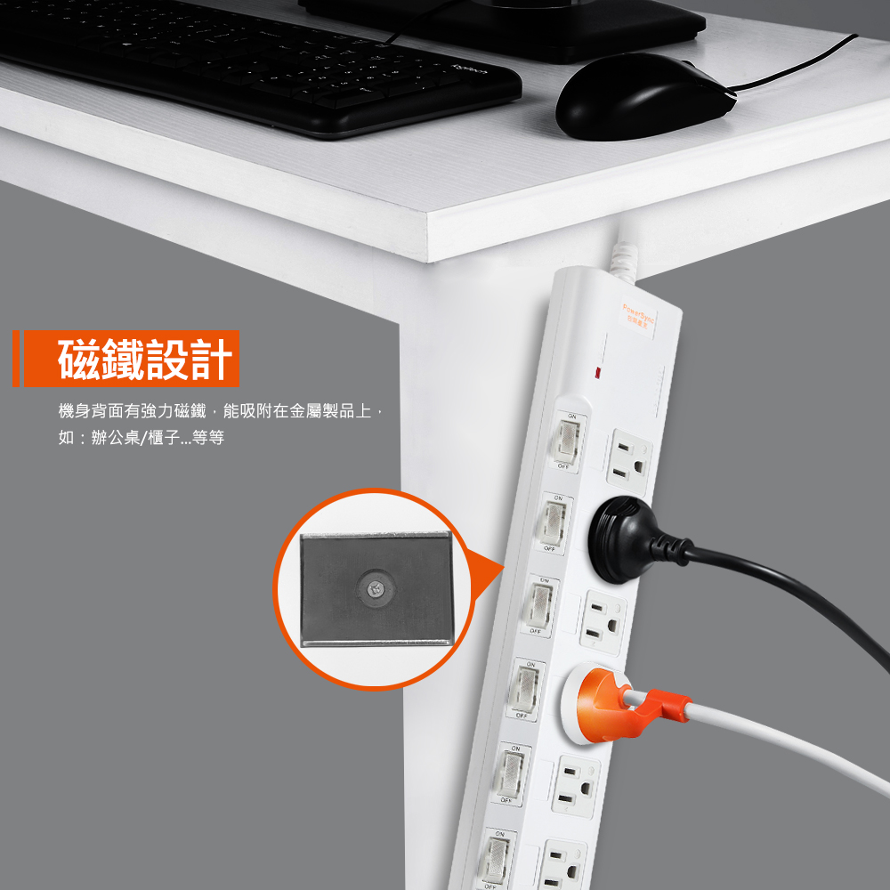 ● 品名:防雷擊六開六插延長線(磁鐵固定)