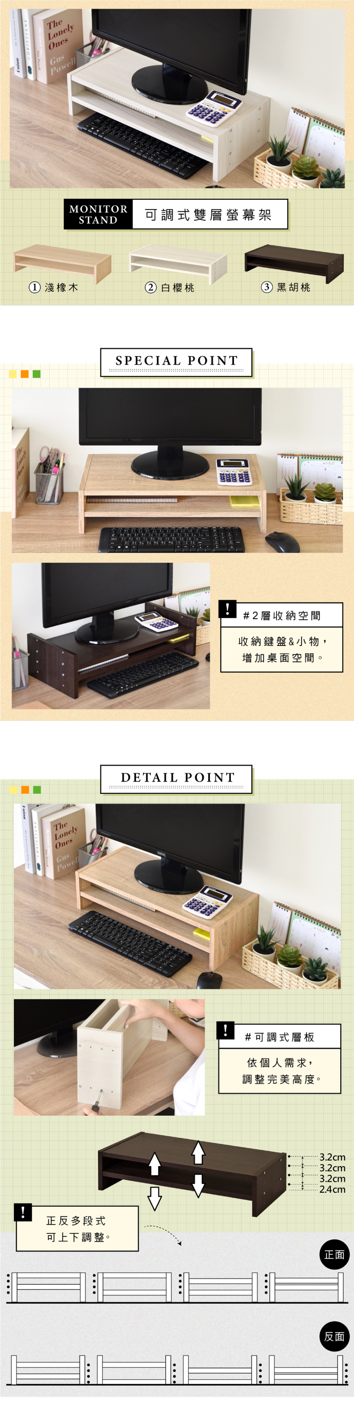 HOPMA可調式雙層螢幕架/E-5501PMS/寬51x深23x高13cm/淺橡(漂流)木