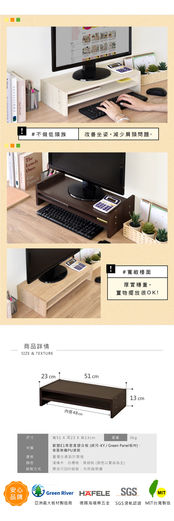 首頁 >  電腦用架類   辦公桌上日常好物   > HOPMA可調式雙層螢幕架/E-5501PMS/寬51x深23x高13cm/淺橡(漂流)木