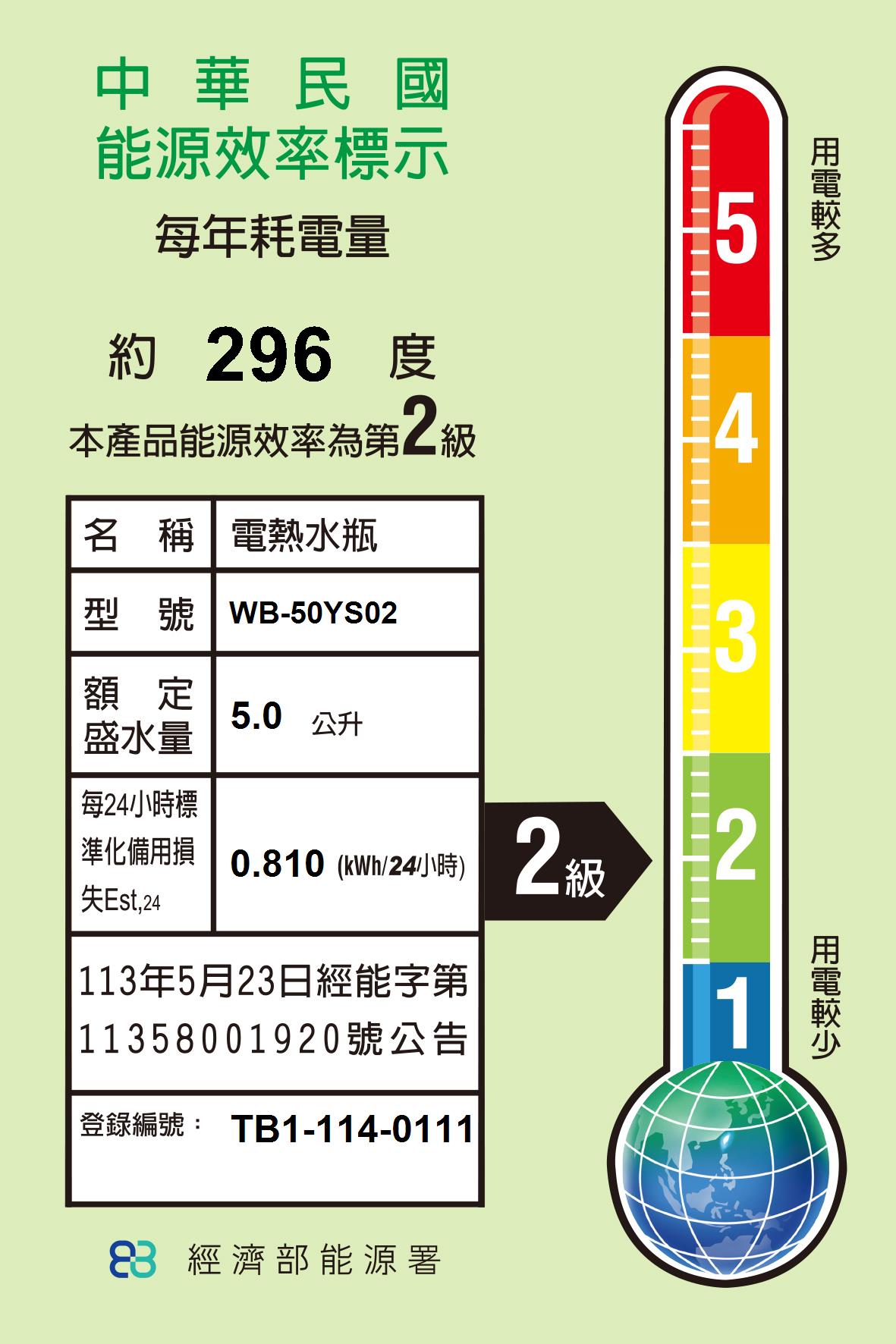 CHIMEI 奇美 5L不鏽鋼無縫內膽三段保溫電熱水瓶 WB-50YS02