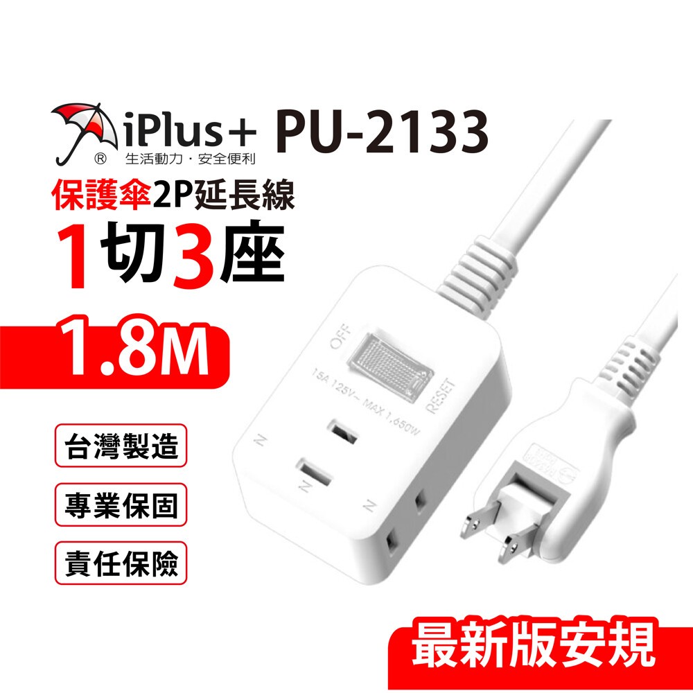 首頁 >  延長線/插座   【辦公室必備 ‧ 電力滿格不斷線,延長線指定商品滿額贈】   > iPlus+ 保護傘 1開3插防火旋轉插頭延長線/中繼線1.8m/PU-2133/台灣製造