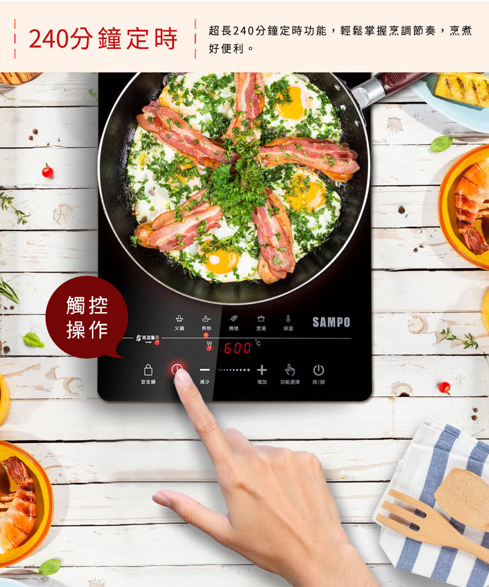 5組烹調模式選擇:火鍋、燒烤、褒湯、煎炒、保溫