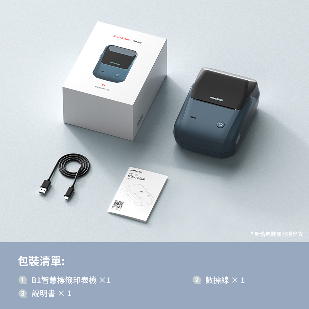 標籤機×1、USB充電線×1、說明書×1