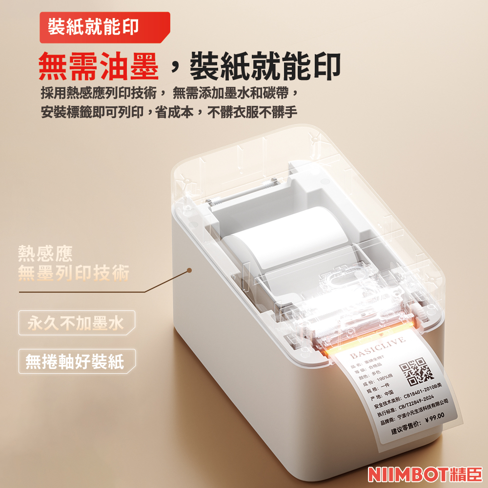 熱感應印字,不用"墨水"或"碳帶"耗材。