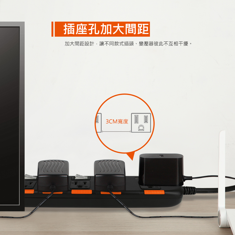 ● 插座:3Pin插頭/三孔-6個接地插座(防塵蓋設計)/5個開關/1個總開關