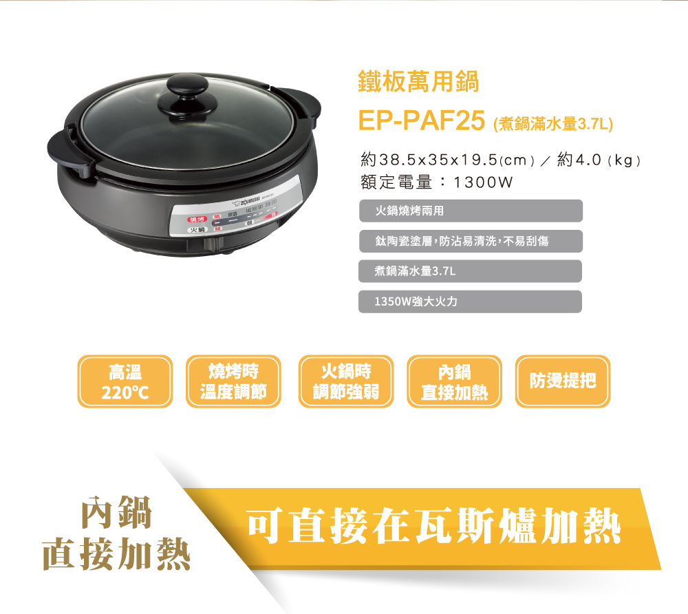 象印*3.7L*鐵板萬用鍋(EP-PAF25)