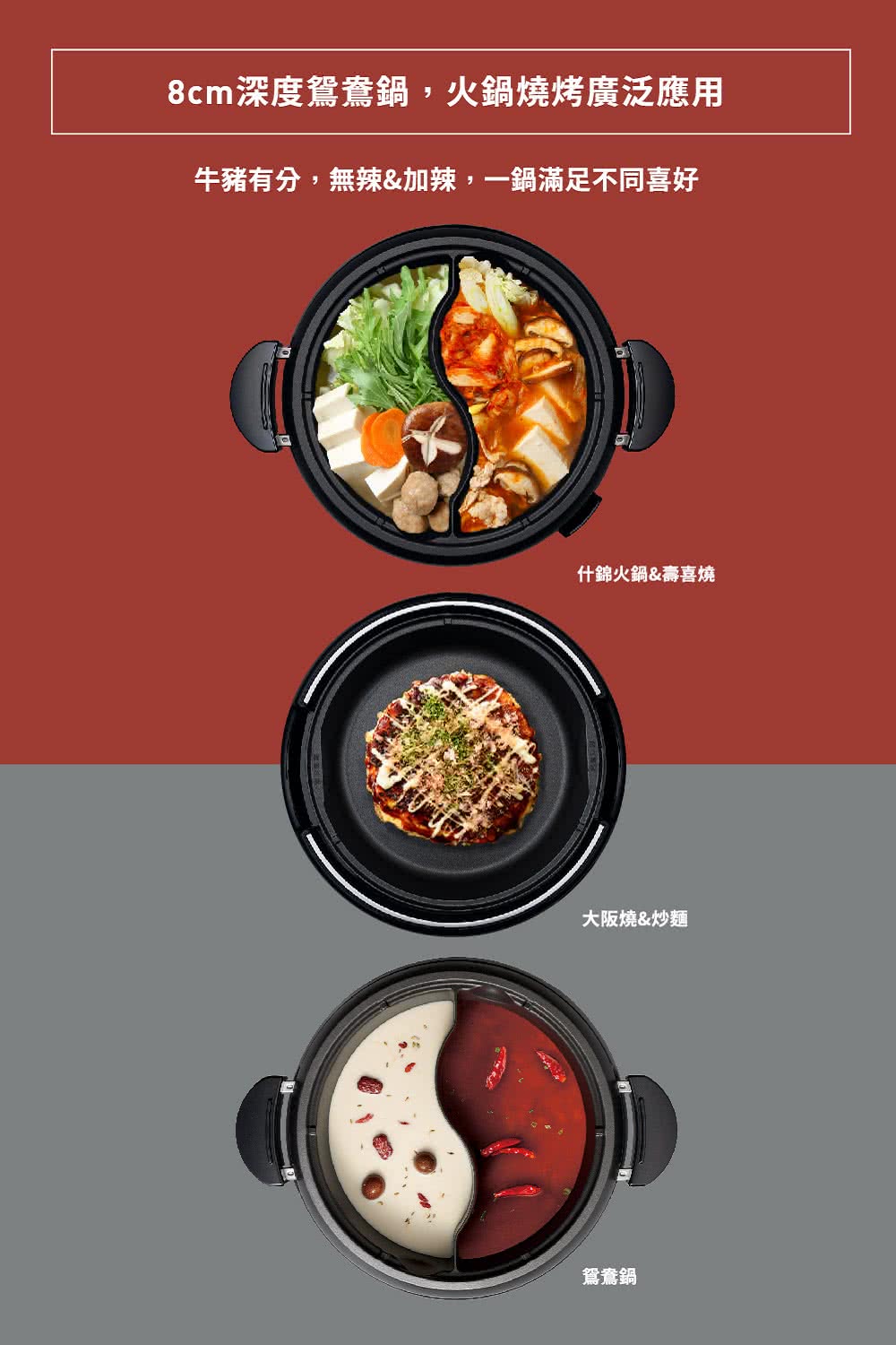 (1)深度8cm鴛鴦鍋,雙重口味雙重享受。