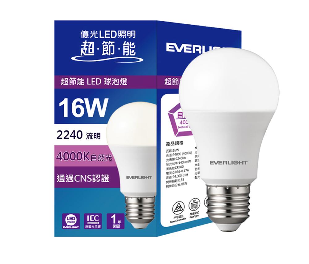 憶光EVERLIGHT 16W超節能LED球泡燈/自然光/EL18/4入/組