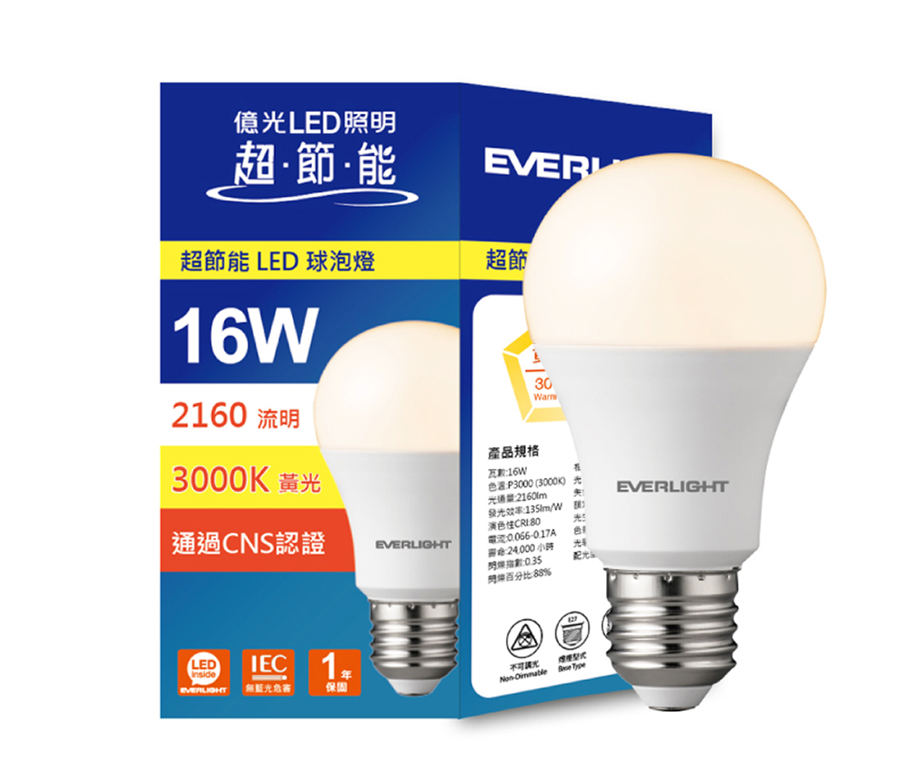 首頁 >  燈管.燈泡照明   > 憶光EVERLIGHT 16W超節能LED球泡燈/自然光/EL18/4入/組