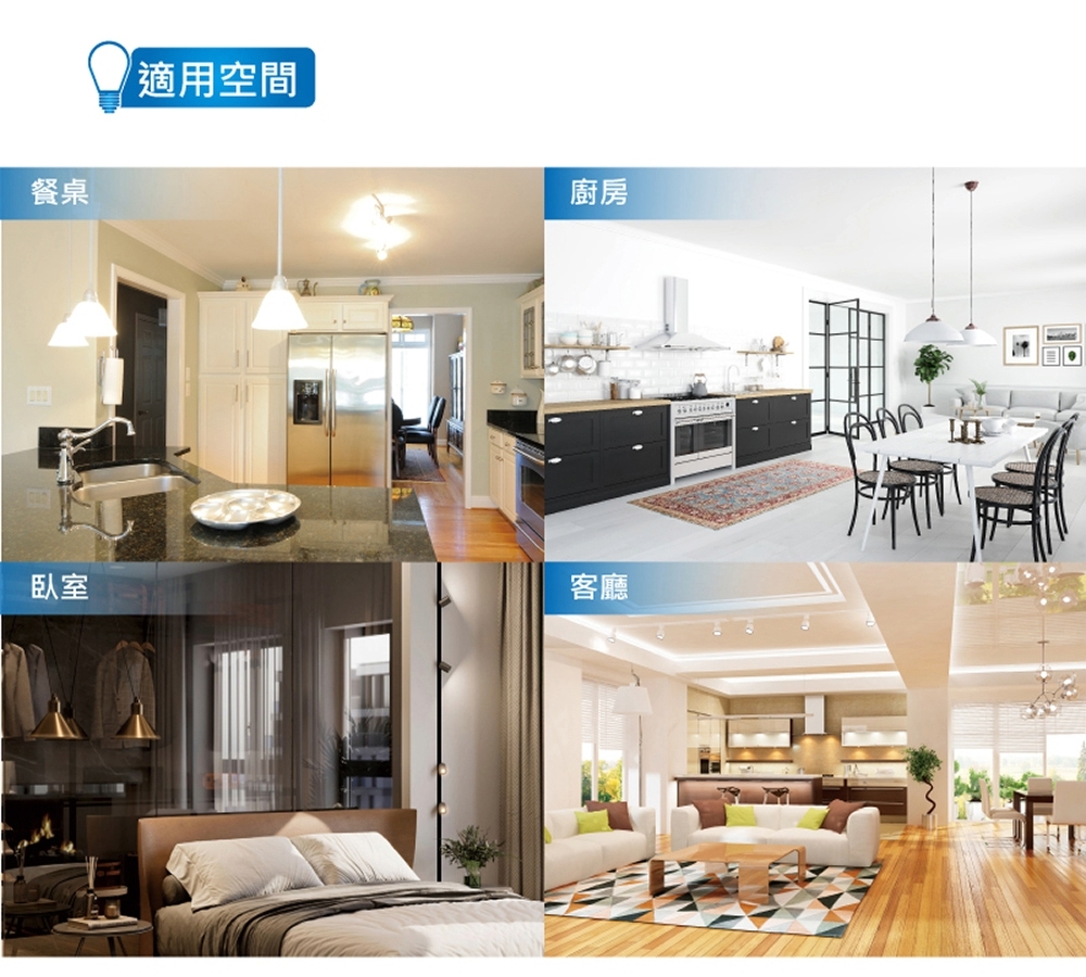 適用空間 清晰明亮:學校、商場 清晰不生硬:辦公室、浴室 溫暖、舒適:居家空間