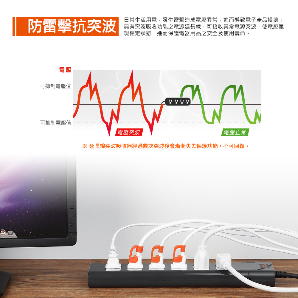 ‧ 突波保護有效吸收異常電壓,穩定電流