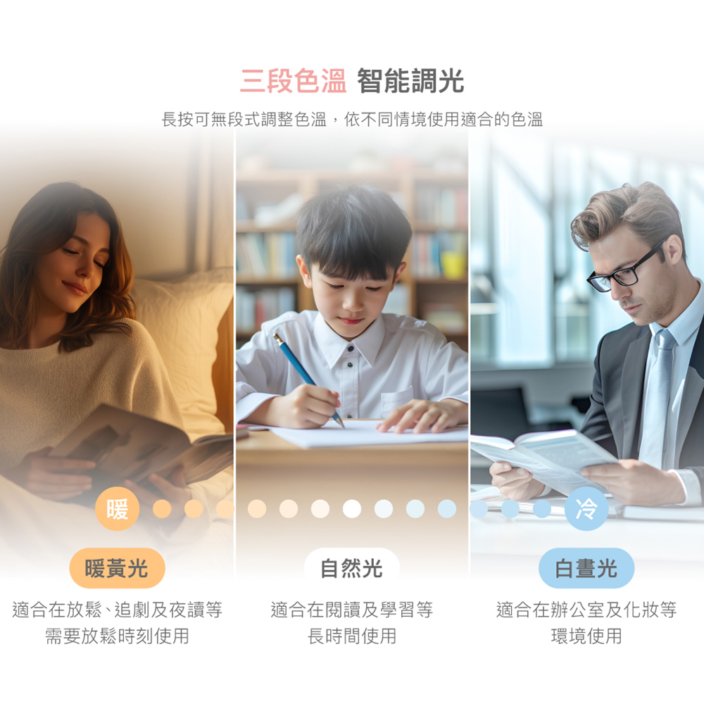 依不同情境選擇適合的色溫,長按可無段式調整。