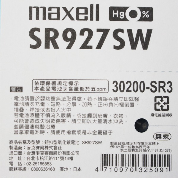 品名:maxell SR927SW 鈕扣型電池 395/一顆入(促70) 1.55V 鈕扣電池 手錶電池 日本製-傑梭