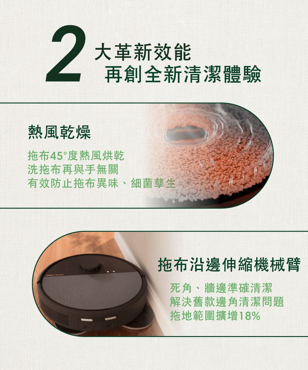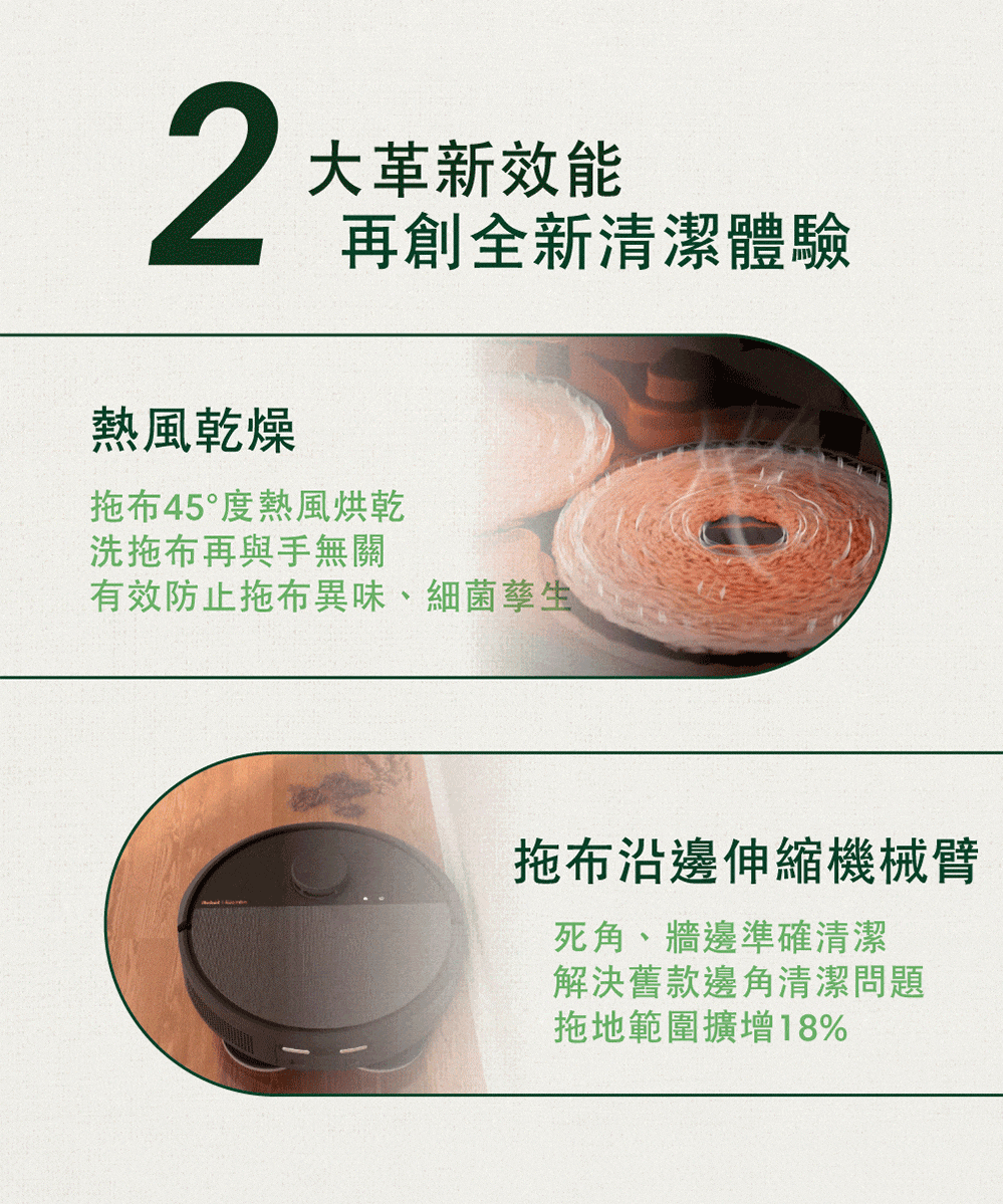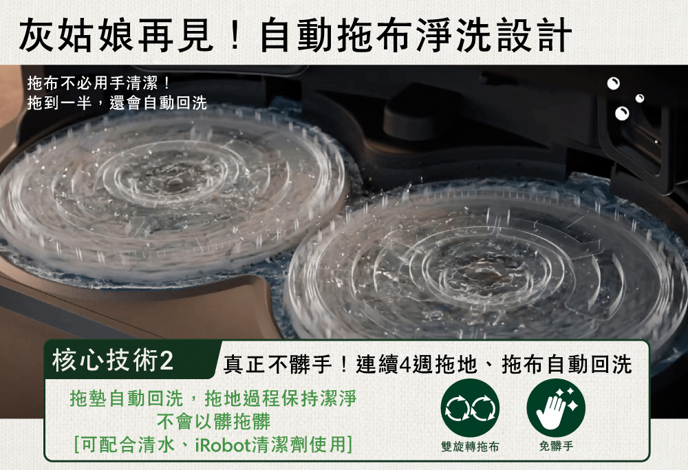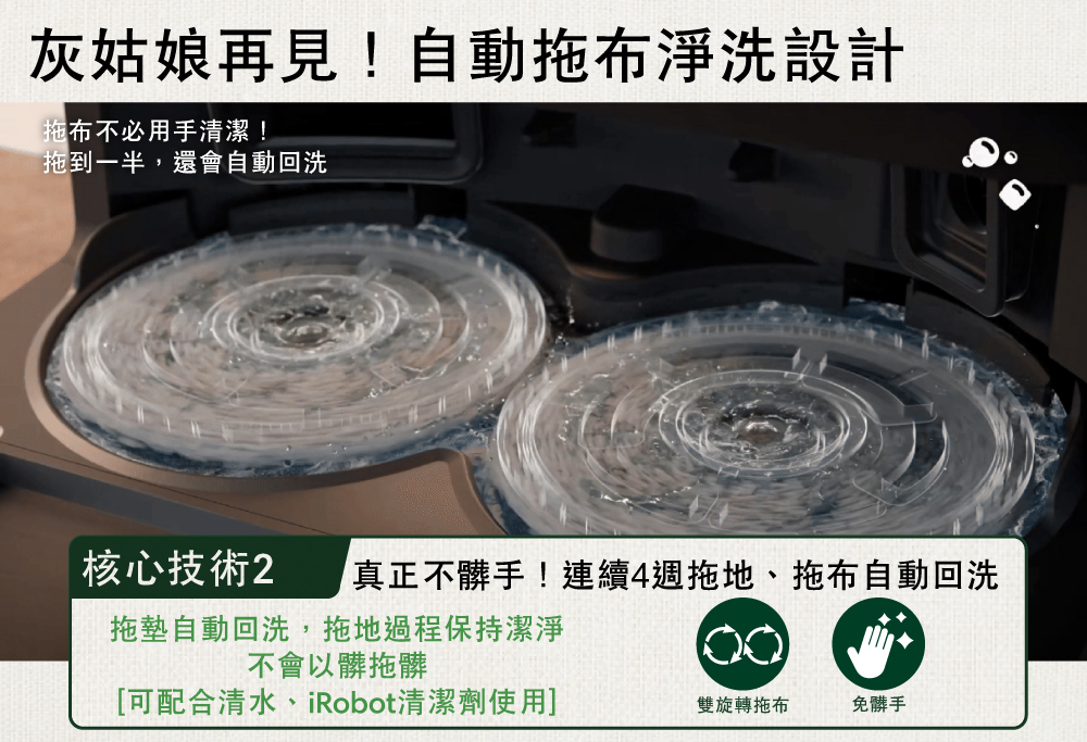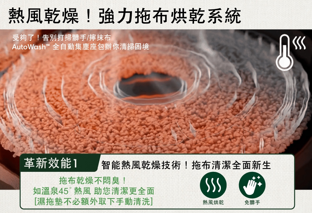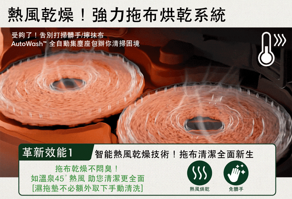 ■ 自動拖布淨洗 + 45℃熱風烘乾設計