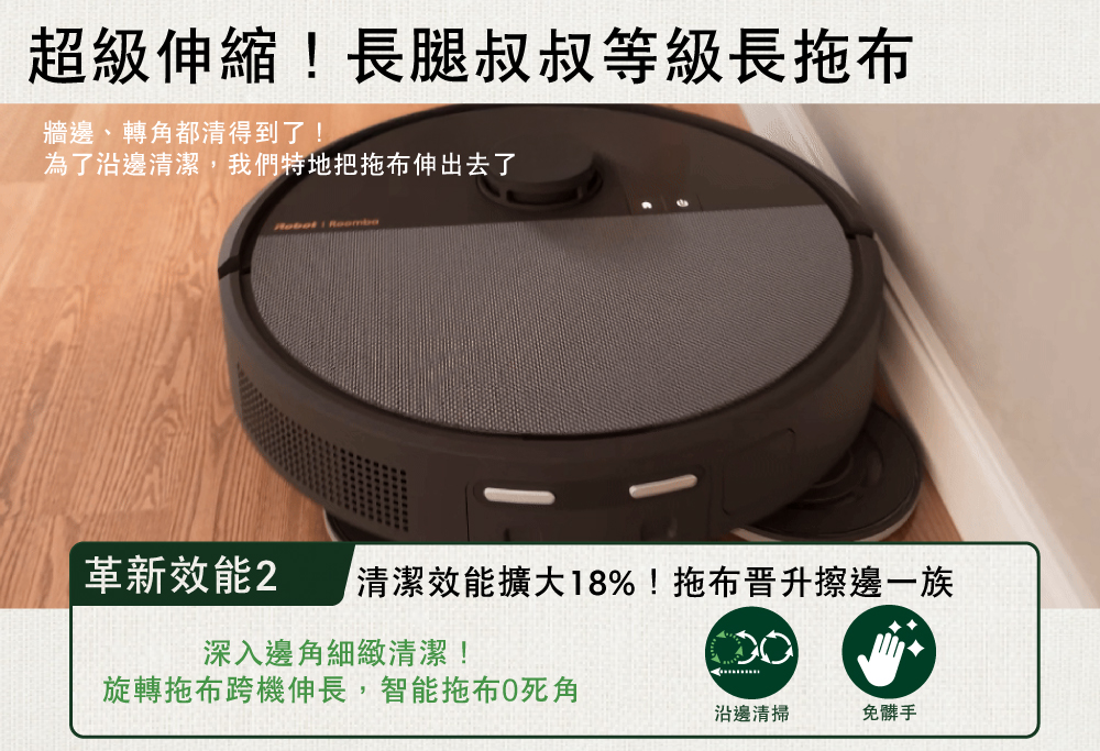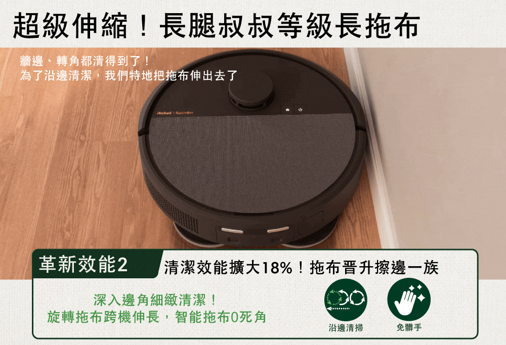 ■ 拖布延邊伸縮機械臂 拖地範圍增加18%