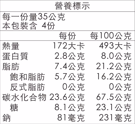 過敏原:含麩質的榖物、堅果類、大豆類、奶類