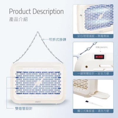 .採用UVA紫外線365nm捕蚊波長,可達50㎡有效誘蚊,生活空間輕鬆無蚊擾。