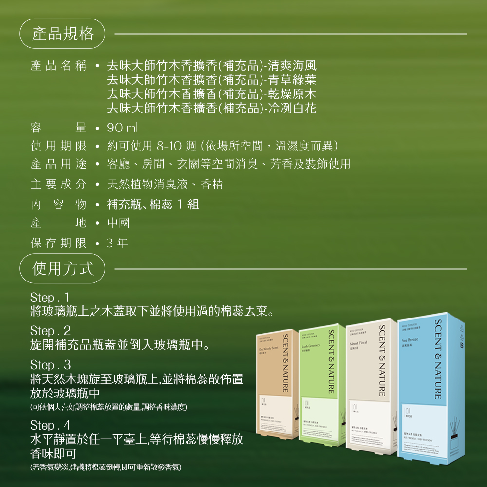 花仙子去味大師SCENT&NATURE竹木香擴香補充品/清爽海風/90ml/組