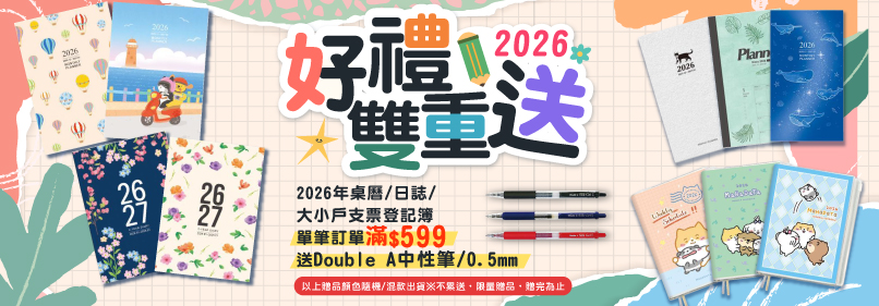 活動專區 > 10月促銷活動 > 滿額贈-2026年 桌曆/日誌/大小戶支票登記簿