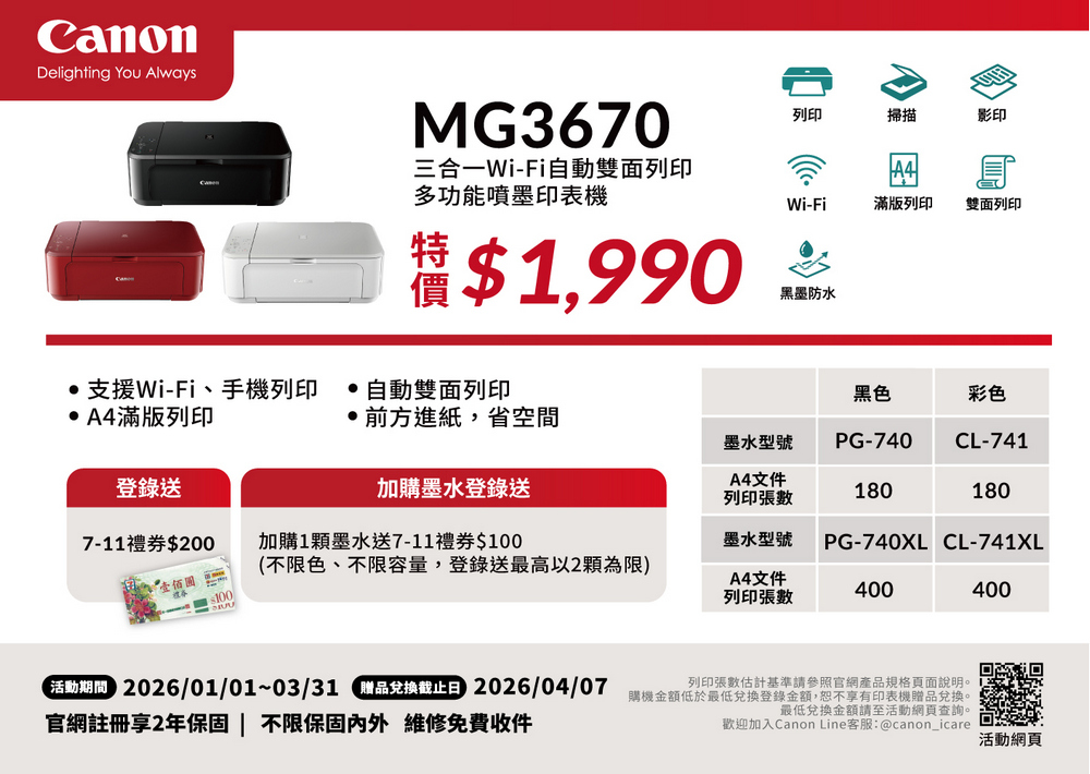 Canon PIXMA多功能相片複合機