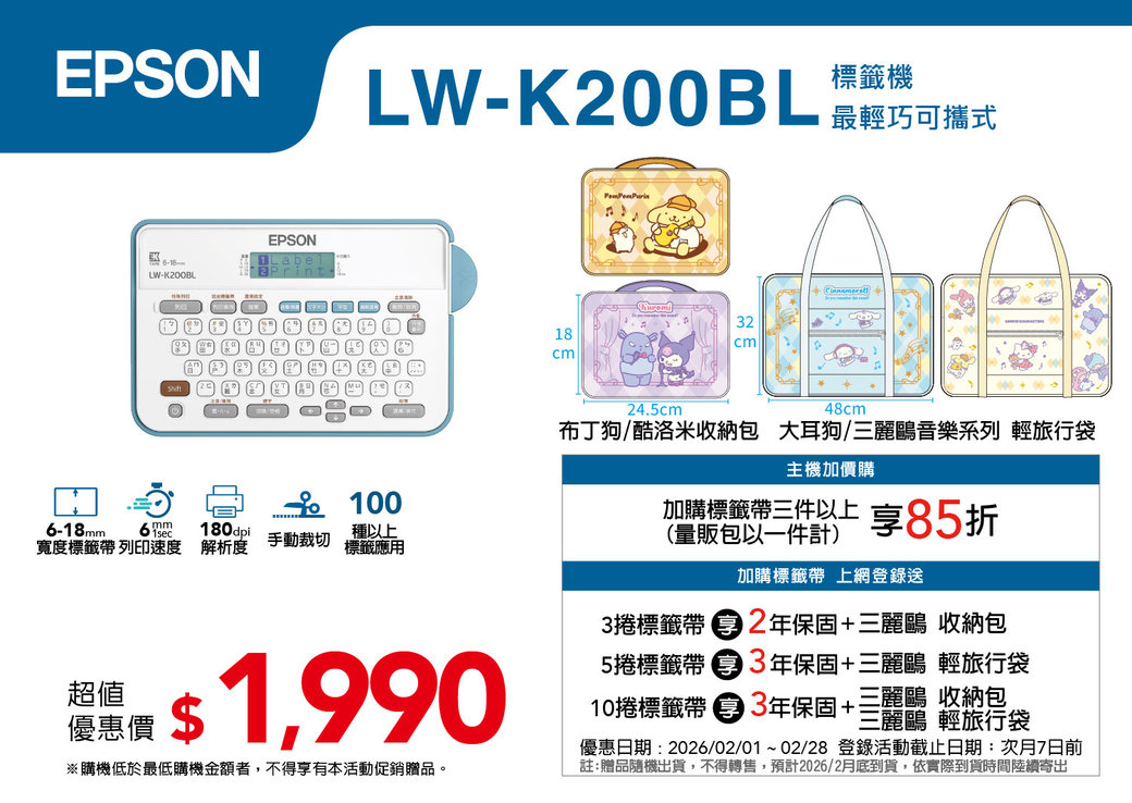 【滿額禮】凡購買『愛普生EPSON』標籤機(帶)全系列商品,單次單筆訂單滿$3000元,即贈 贈品:7-11 $100元禮券一張(恕不累送,數量有限,送完為止) ※(更多商品請上網選購) |