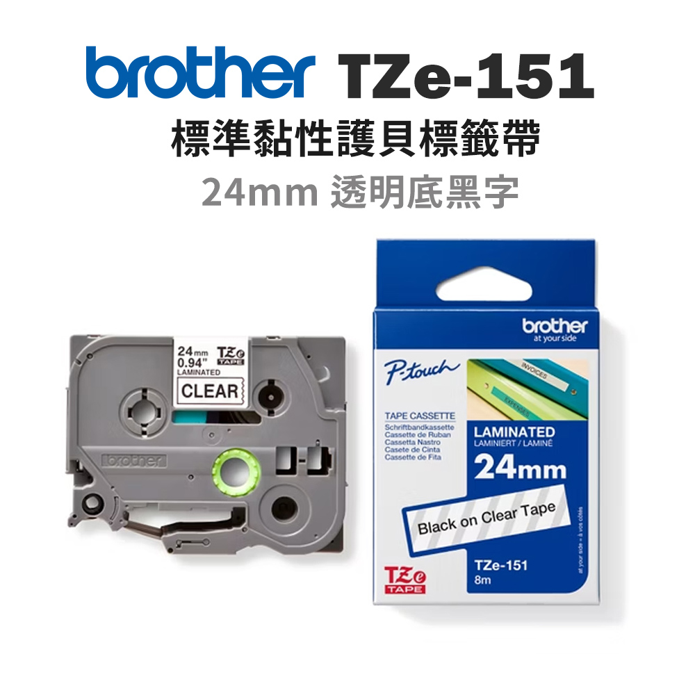 兄弟牌brother護貝標籤帶/透明底黑字/TZe-151/24mmx8M