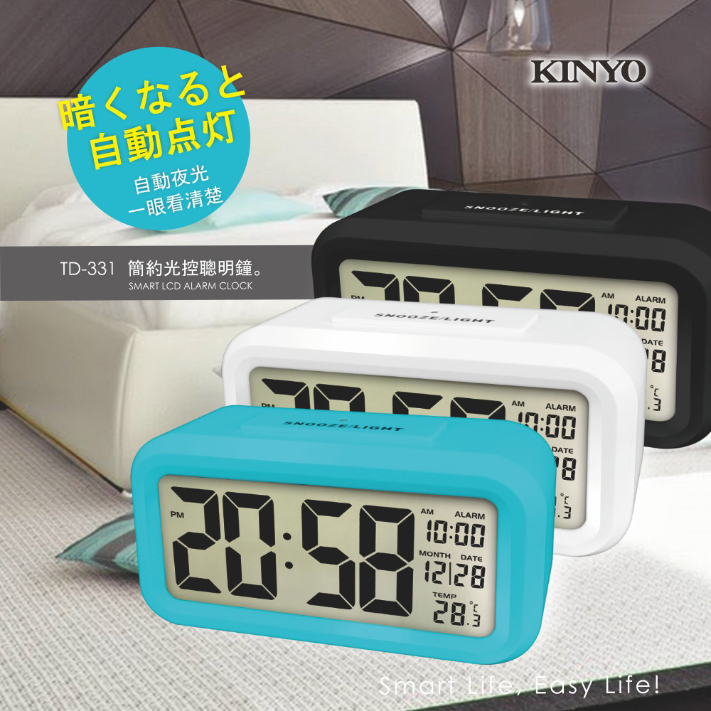 .採用創新光線感應元件,周圍環境暗時背光自動微亮,不需動手一眼就可看清時間;反之,周圍環境亮時背光不亮,節約省電。.採用一種柔和的光,在夜裡能看清時間,但又不會刺眼和影響睡眠。.超大數字顯示.時間/日期/溫度顯示.鬧鐘、貪睡功能.12/24 小時制