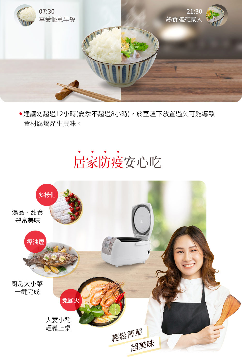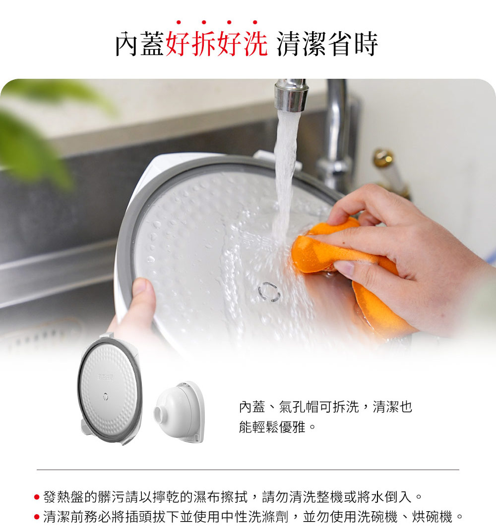 ★ 注意:內鍋請勿放入餐具或用於洗碗、勿使用金屬勺子或攪拌器,且不適用洗碗機清洗,請使用廚房用中性清潔劑以海綿刷洗,避免內鍋塗層遭刮傷脫落。
