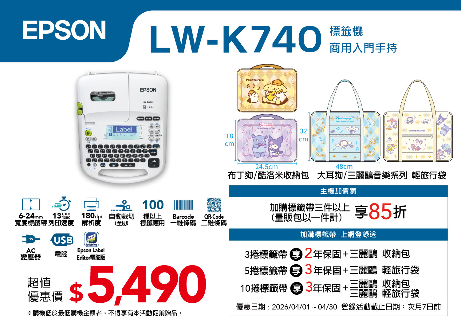 【滿額禮】凡購買『愛普生EPSON』標籤機(帶)全系列商品,單次單筆訂單滿$3000元,即贈 贈品:7-11 $100元禮券一張(恕不累送,數量有限,送完為止) ※(更多商品請上網選購) |