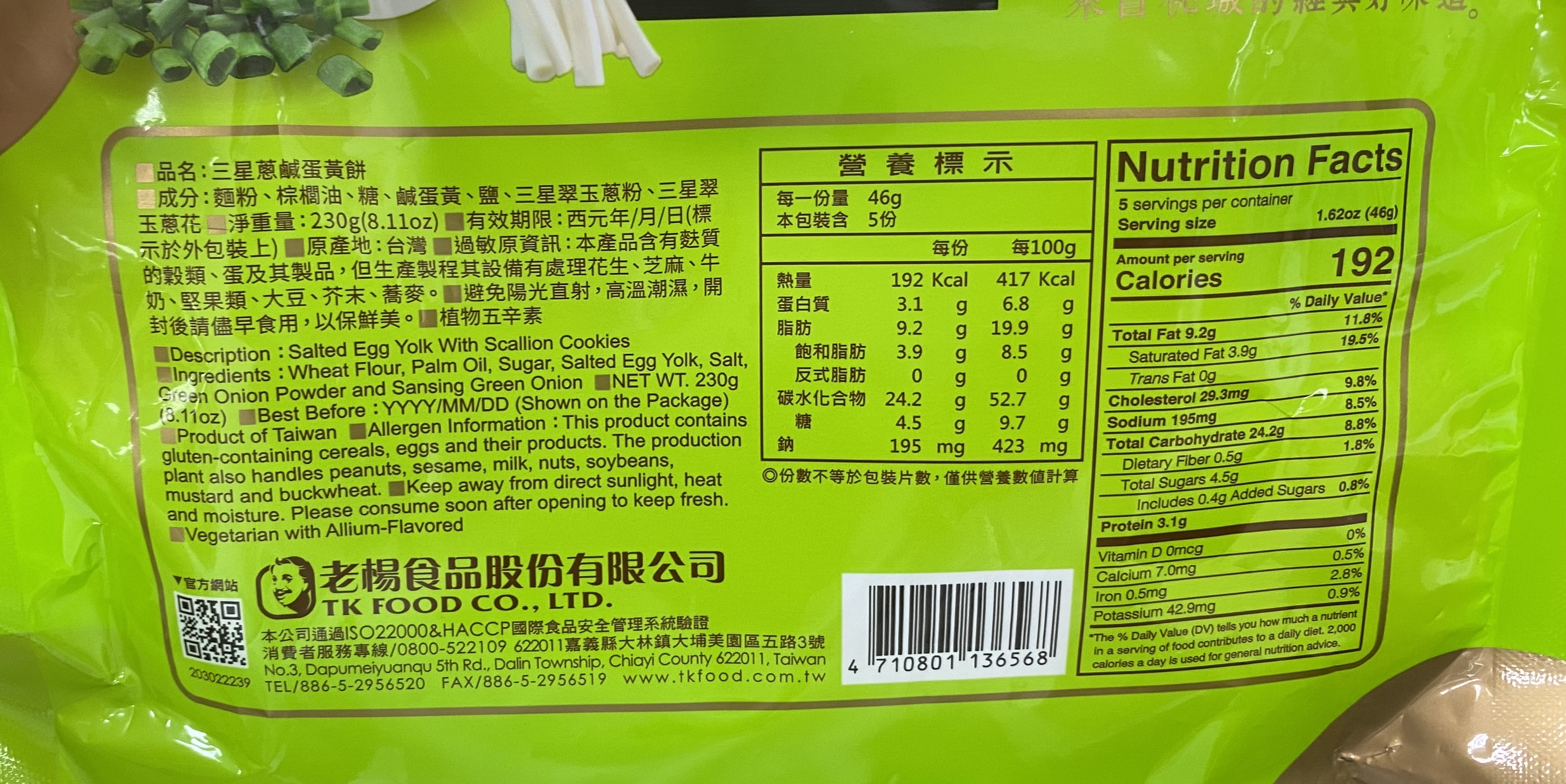 特選宜蘭在地三星蔥,佐來自屏東鹹蛋黃顆粒,輕巧均勻拌入餅皮內,散發出青蔥迷人香氣與濃濃的鴨蛋香味,每一口酥脆鹹香,越吃越香!