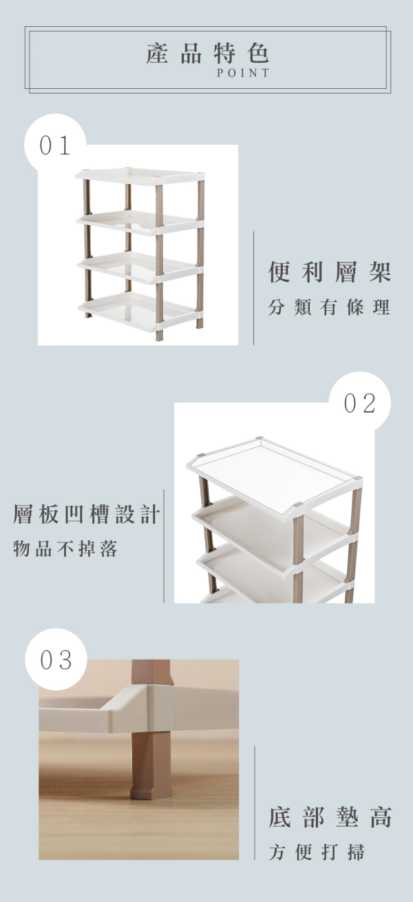 簡約柔和色系,自由組裝,輕鬆上手;底部墊高設計,便於清理底部灰塵。
