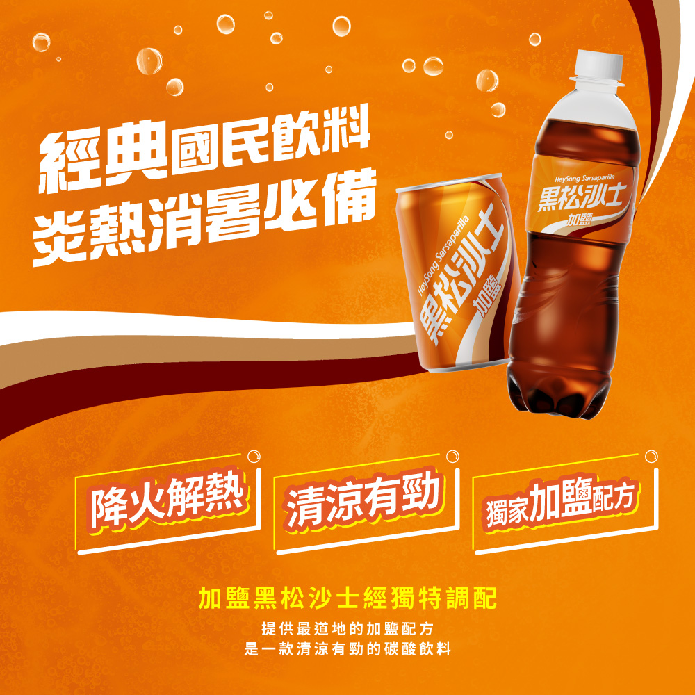 黑松沙士提供最適合的加鹽配方,獨家口味,清涼有勁。