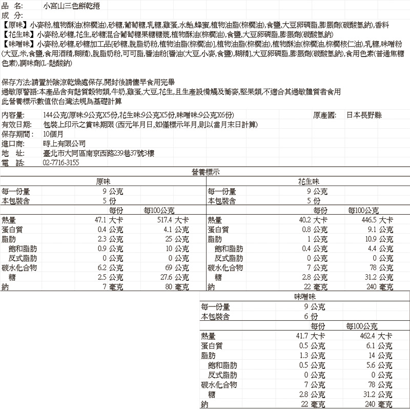 小宮山三色餅乾捲/144g