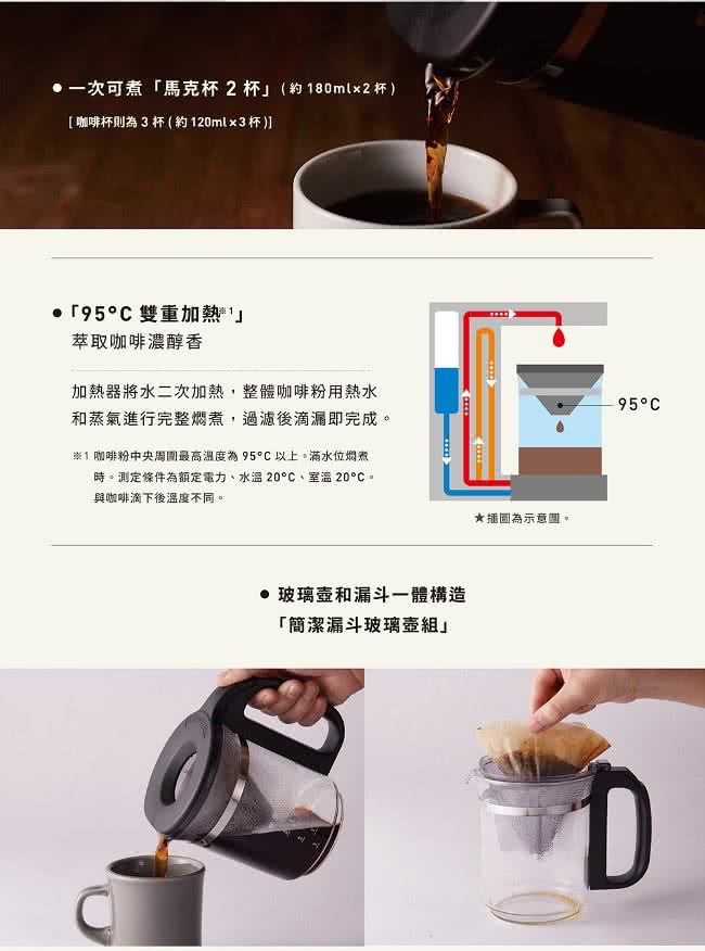 (1) 「95℃雙重加熱」萃取咖啡濃醇香。