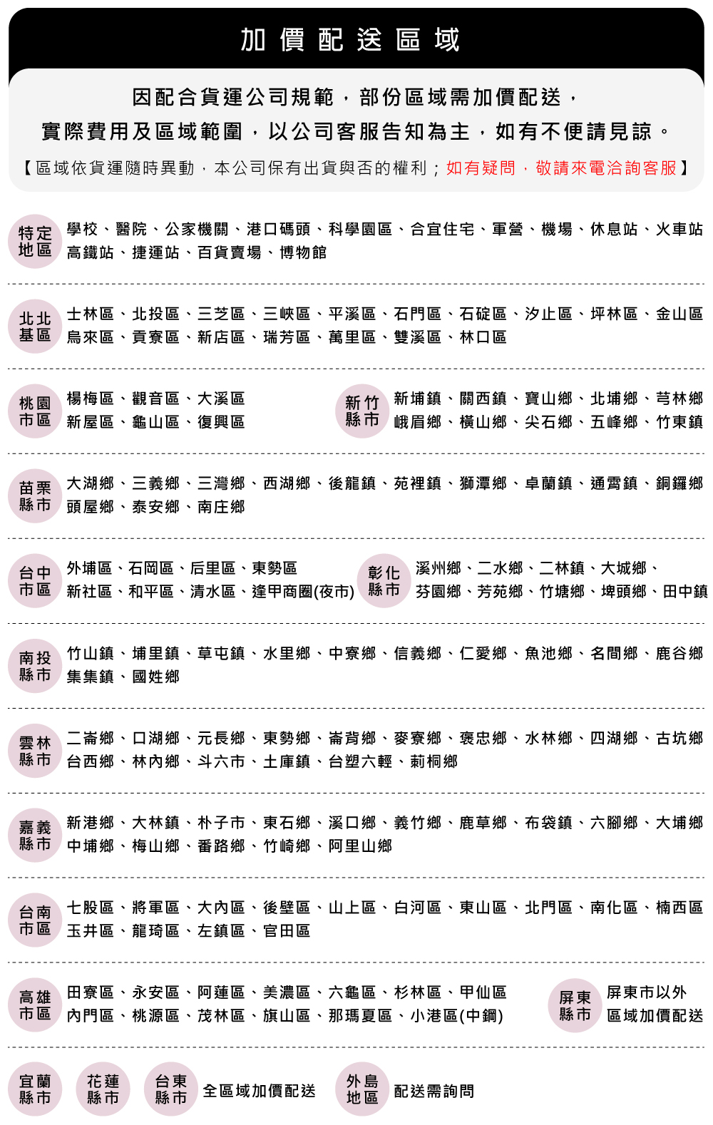 依品項/地區不同運費另計,如需加收運費客服將會另行通知。