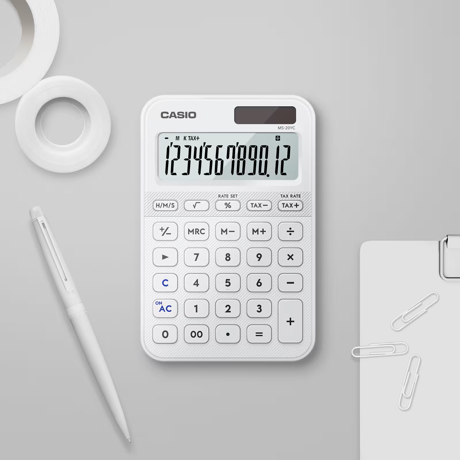 計算機採用平坦表面,搭配圓潤邊角,既維持設計的一致性,也促進順暢的按鍵操作。