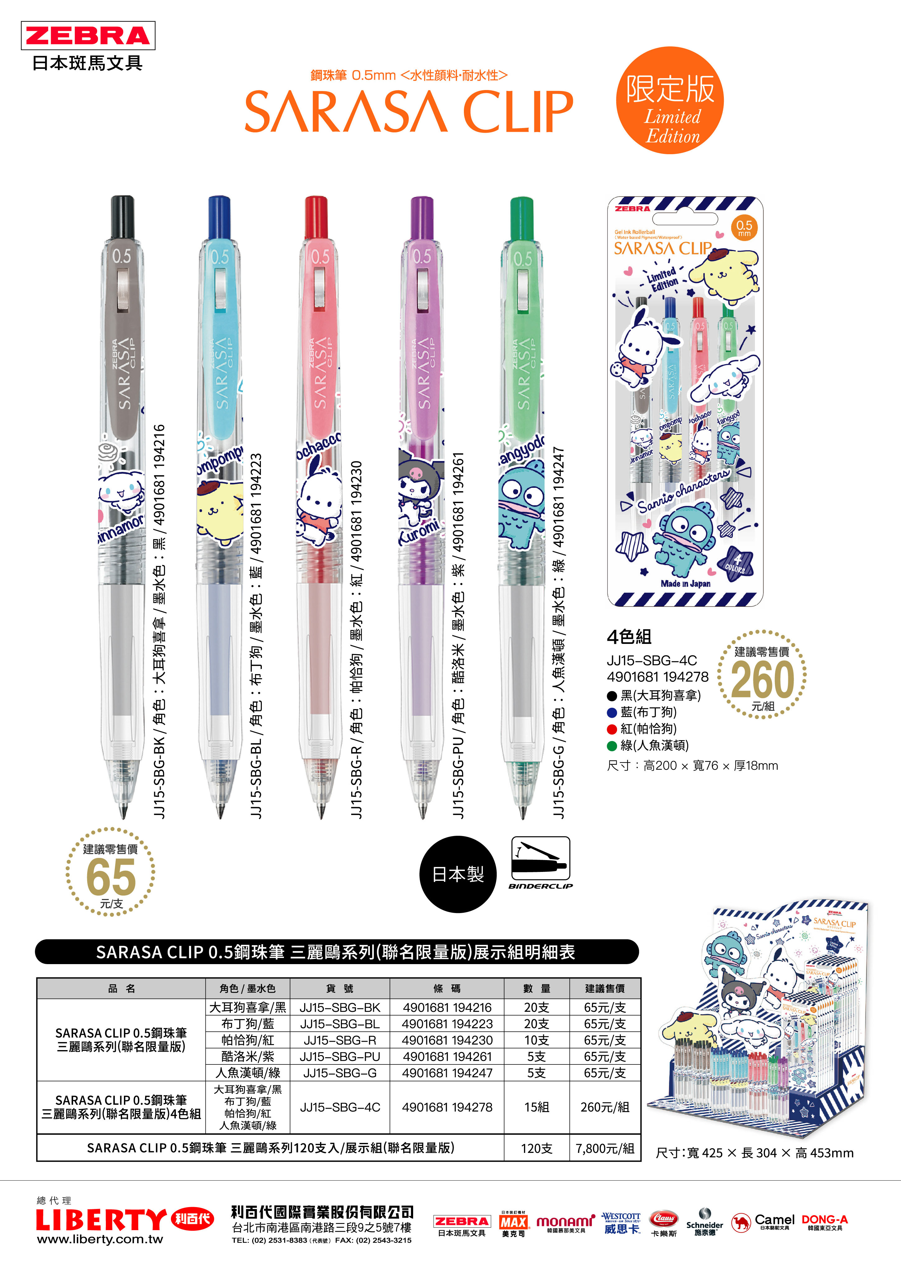 斑馬ZEBRA SARASA CLIP鋼珠筆三麗鷗限定版/JJ15-SBG-BK/大耳狗喜拿/黑芯/0.5mm
