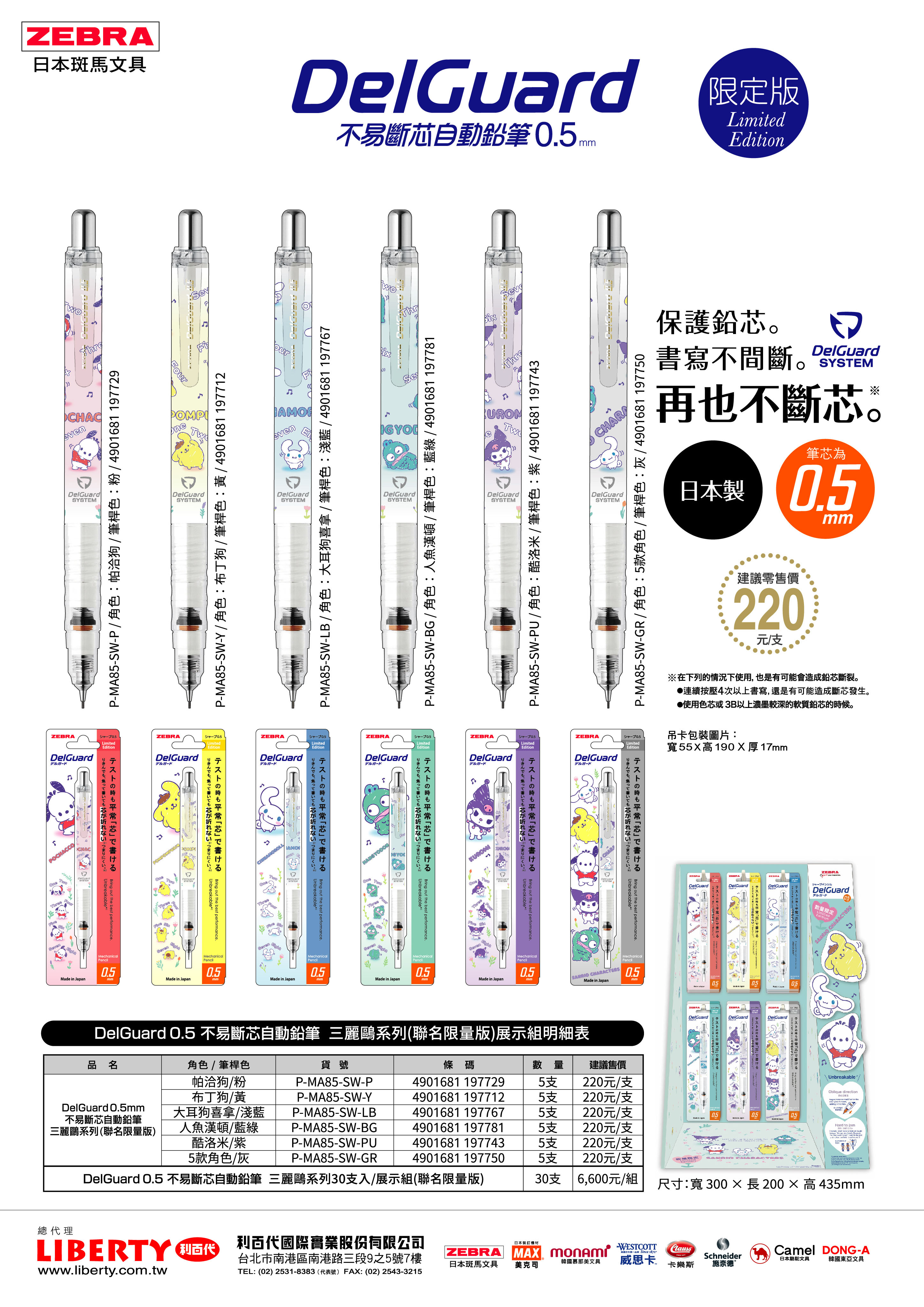 首頁 >  自動鉛筆   【滿額禮】開學季搶先跑-筆類好禮雙重贈   > 斑馬ZEBRA DelGuard不易斷芯自動鉛筆三麗鷗限定版/P-MA85-SW-Y/布丁狗/0.5mm