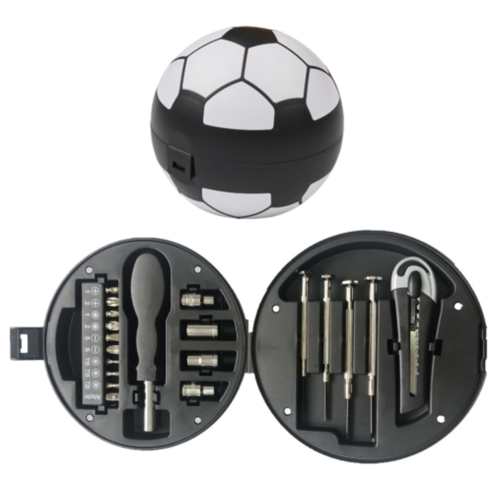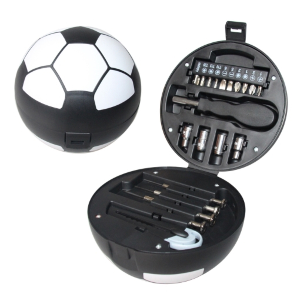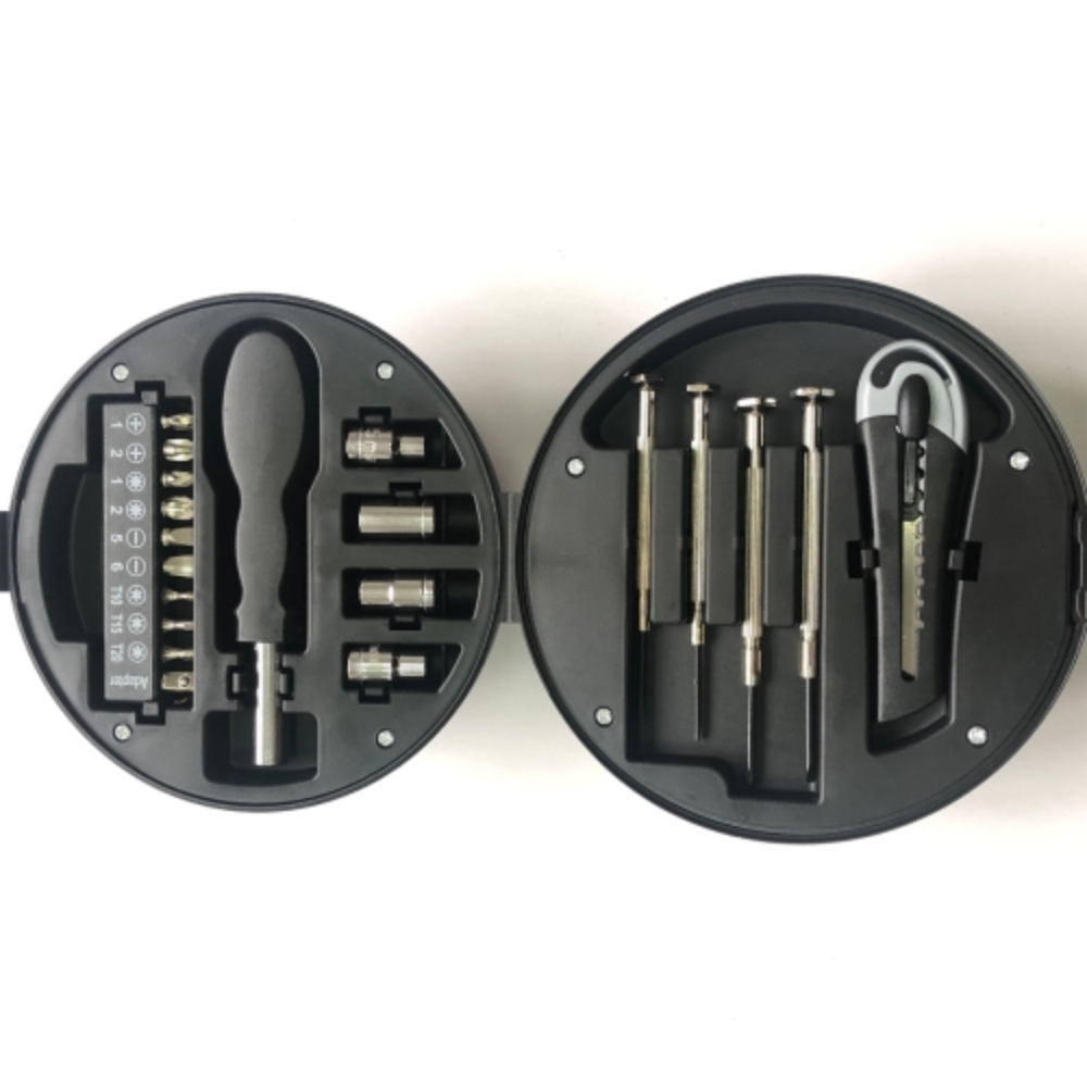 內部工具為:四個套筒尺寸5mm,6mm,7mm,8mm、十個螺絲批頭、一個葫蘆手柄、四個精密螺絲刀、一個美工刀