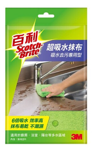 吸水去汙專用型抹布,適用於廚房、浴室、陽台等多水區域。